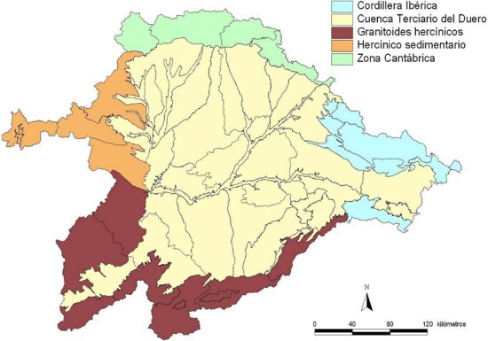 Desde un punto de vista geológico, la cuenca del Duero está constituida por unidad geológica bien definida, la Depresión del Duero y por los bordes de la misma: las Cordilleras Cantábrica, Ibérica y Central y los Montes Galaico - Leoneses. Dicha depresión se configura como una cubeta, de sedimentos terciarios y cuaternarios, lacustre y continental, procedentes del desmantelamiento de las cadenas periféricas y que alberga los mayores acuíferos de la demarcación.